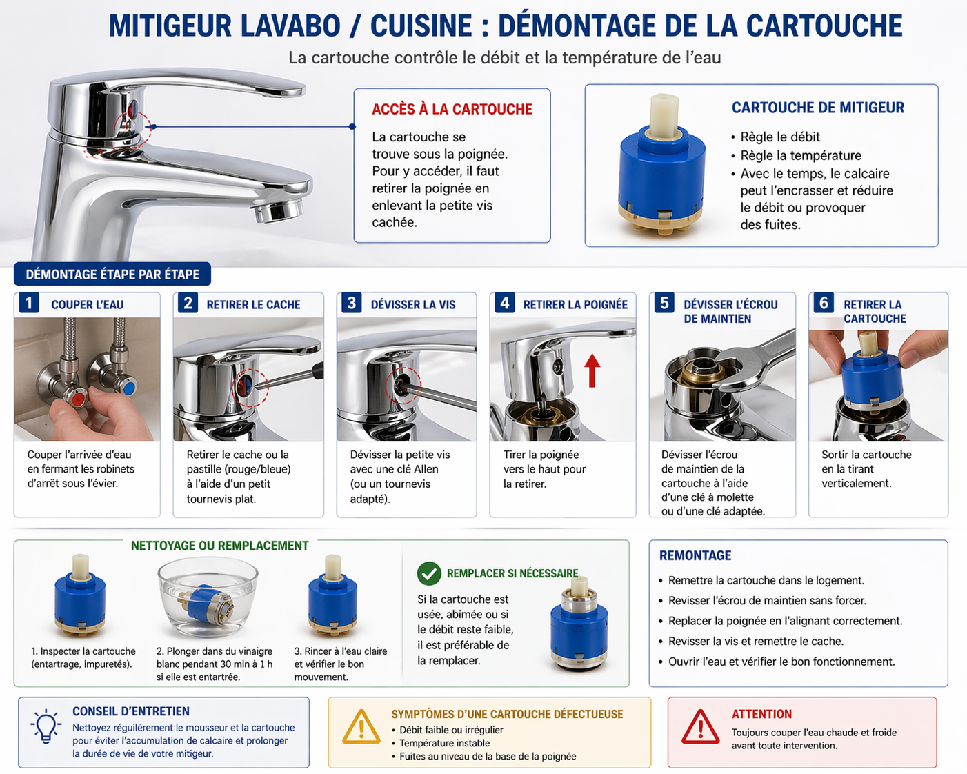Le problème se situe donc directement dans le mitigeur, au niveau du mousseur ou de la cartouche.